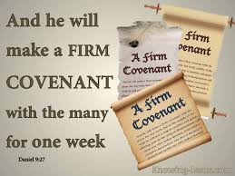 “He will confirm a covenant with many for one ‘seven.’ In the middle of the ‘seven’ he will put an end to sacrifice and offering. And at the temple he will set up an abomination that causes desolation, until the end that is decreed is poured out on him.” This is the NIV text that was used.