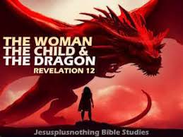 “And there appeared another wonder in heaven; and behold a great red dragon, having seven heads and ten horns, and seven crowns upon his heads. And his tail drew the third part of the stars of heaven, and did cast them to the earth: and the dragon stood before the woman which was ready to be delivered, for to devour her child as soon as it was born. And she brought forth a man child, who was to rule all nations with a rod of iron: and her child was caught up unto God, and to his throne.” (Revelation 12:2-5)