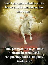 “And I saw, and behold a white horse: and he that sat on him had a bow; and a crown was given unto him: and he went forth conquering, and to conquer.”(Revelation 6:2)